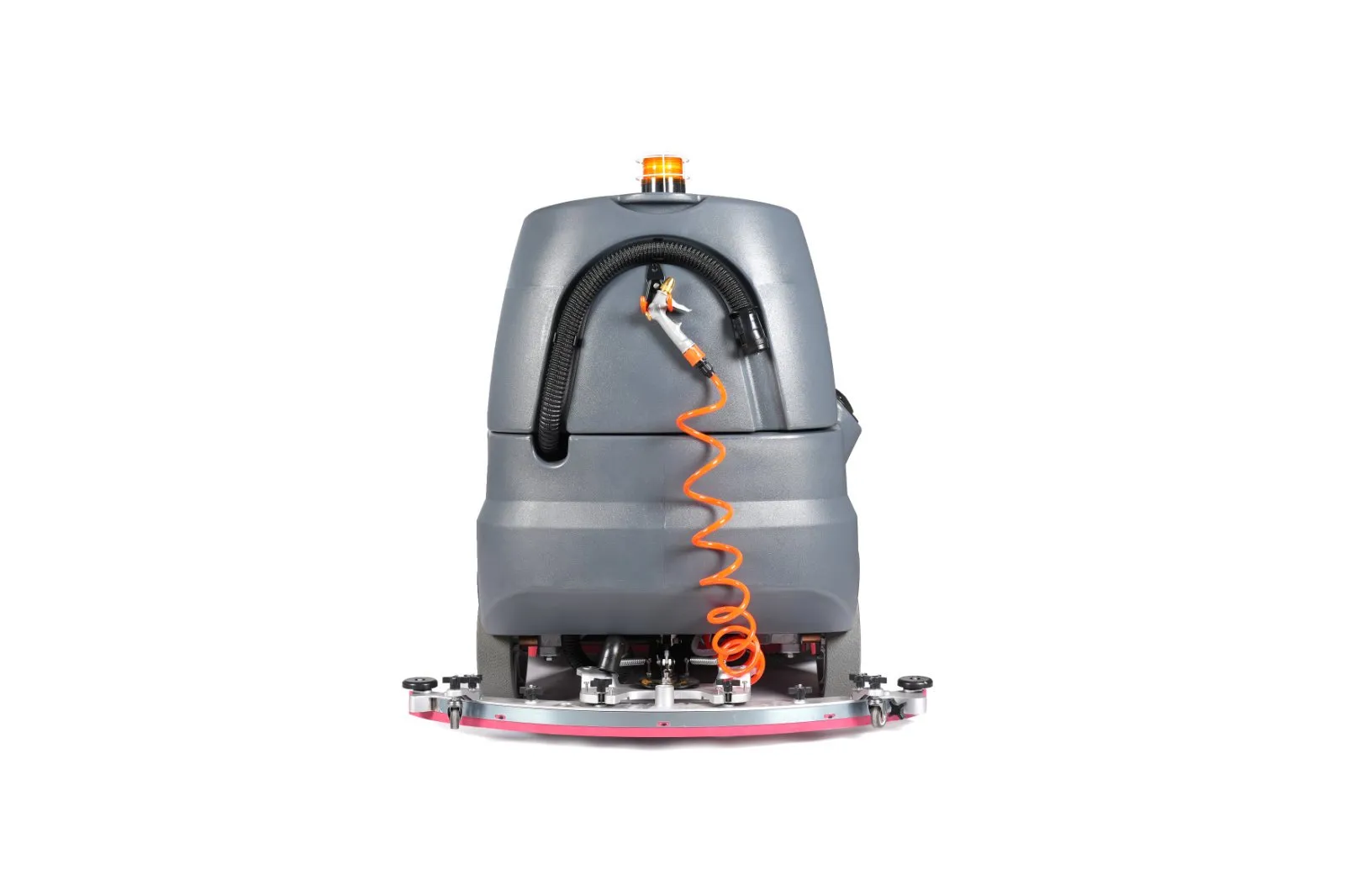 The X160 is a large ride-on scrubber with a larger scrub brush and suction bar design. It offers optional 17-inch or 19-inch scrub brushes, providing a wider cleaning width, making it ideal for large-scale area cleaning. The machine features an intelligent control panel for easy operation, offering efficient scrubbing, sweeping, and suction functions. Equipped with a high-power front-drive motor, it ensures smooth driving and stronger power.